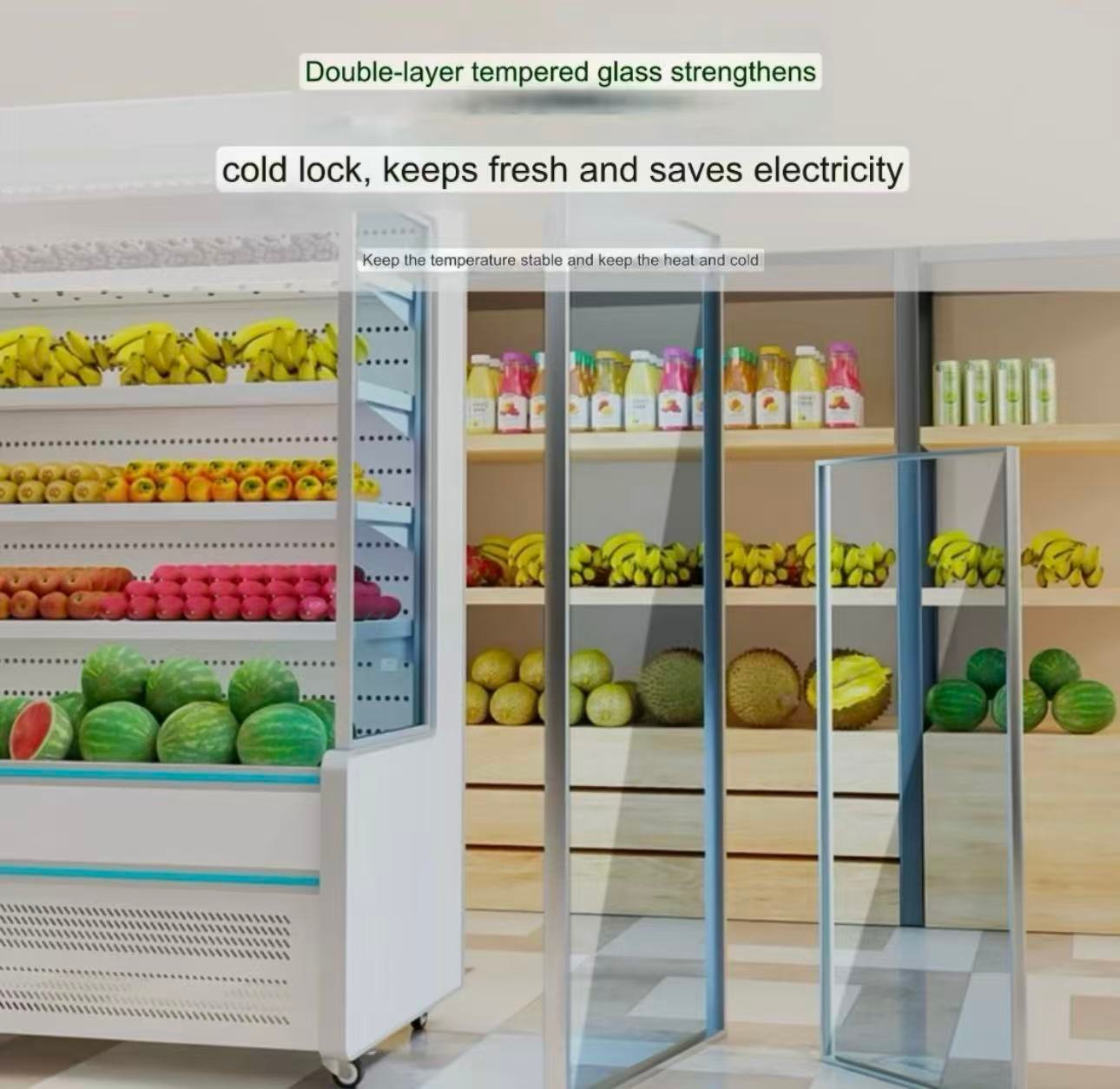 Cold lock, keeps fresh and saves electricity. Keep the temperature stable.