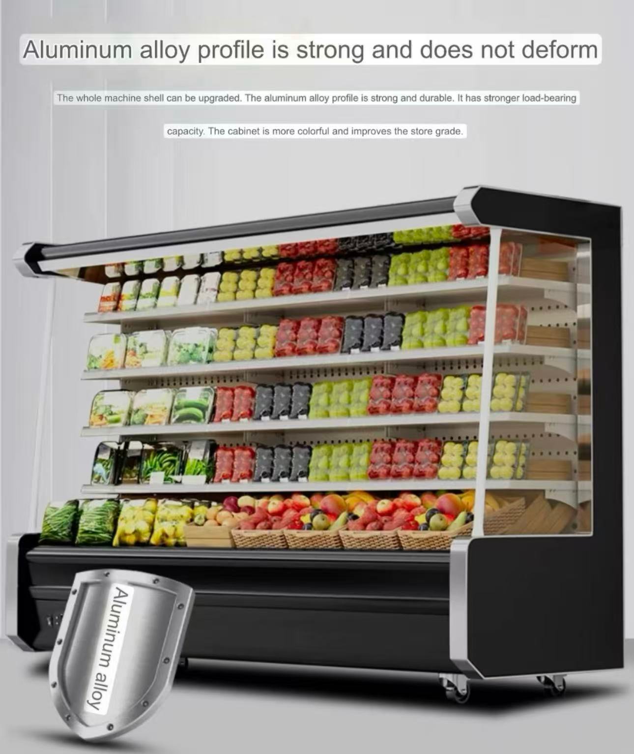 The aluminum alloy profile is strong and durable. It has stronger load-bearing capacity. The cabinet is more colorful and improves the store grade.