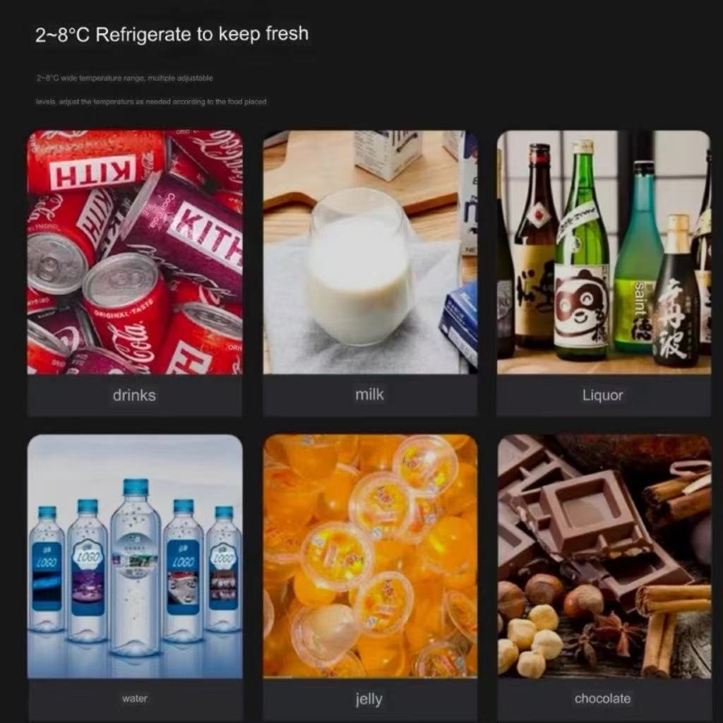 2-8°C wide temperature range, multiple adjustable levels, adjust the temperature as needed according to the food placed